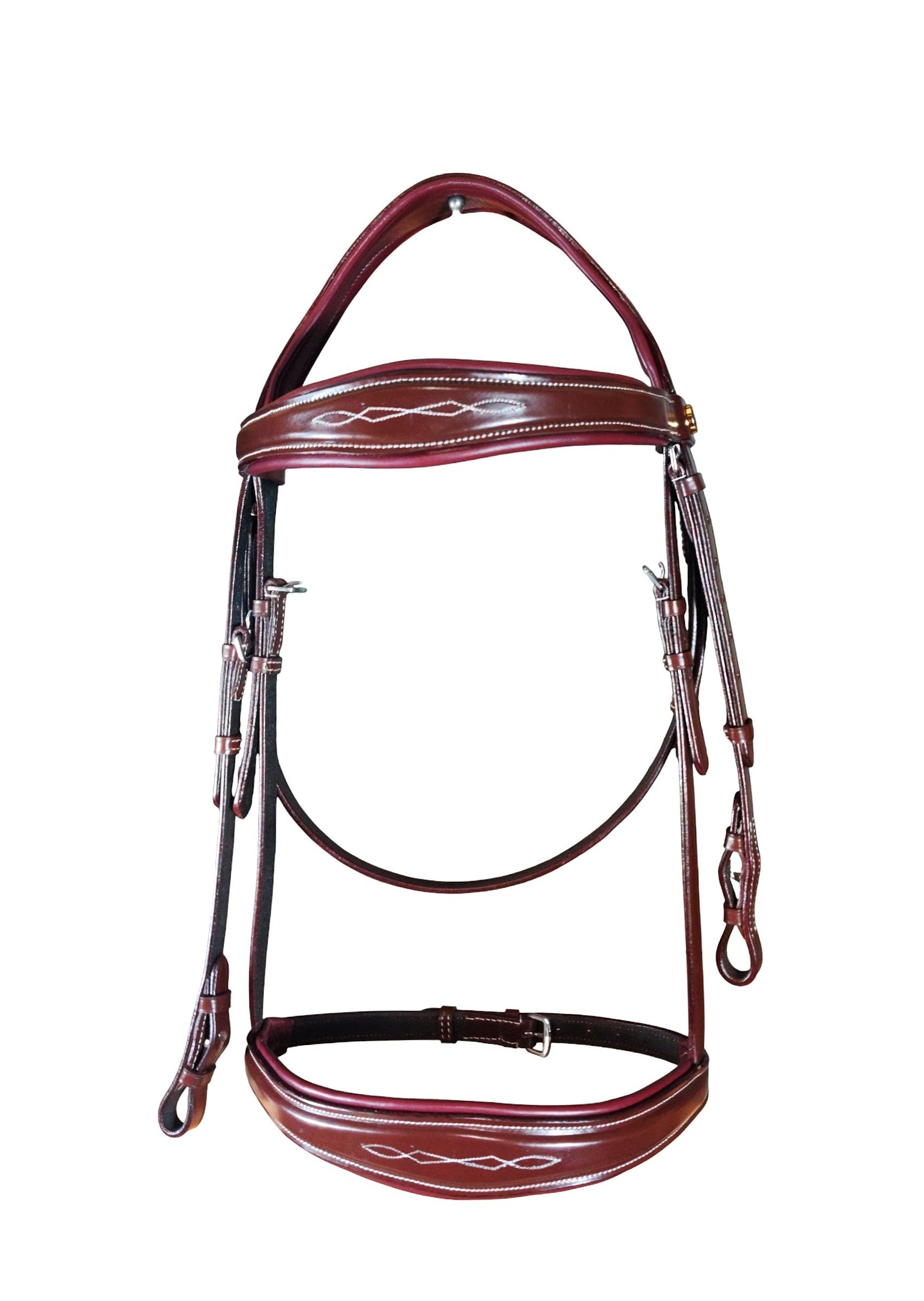 The anatomical padded crownpiece reduces poll pressure, while the softly cushioned noseband ensures a comfortable, secure fit for horses with sensitive skin. Matching fancy-stitched leather reins complete this premium set, offering exceptional grip and style.