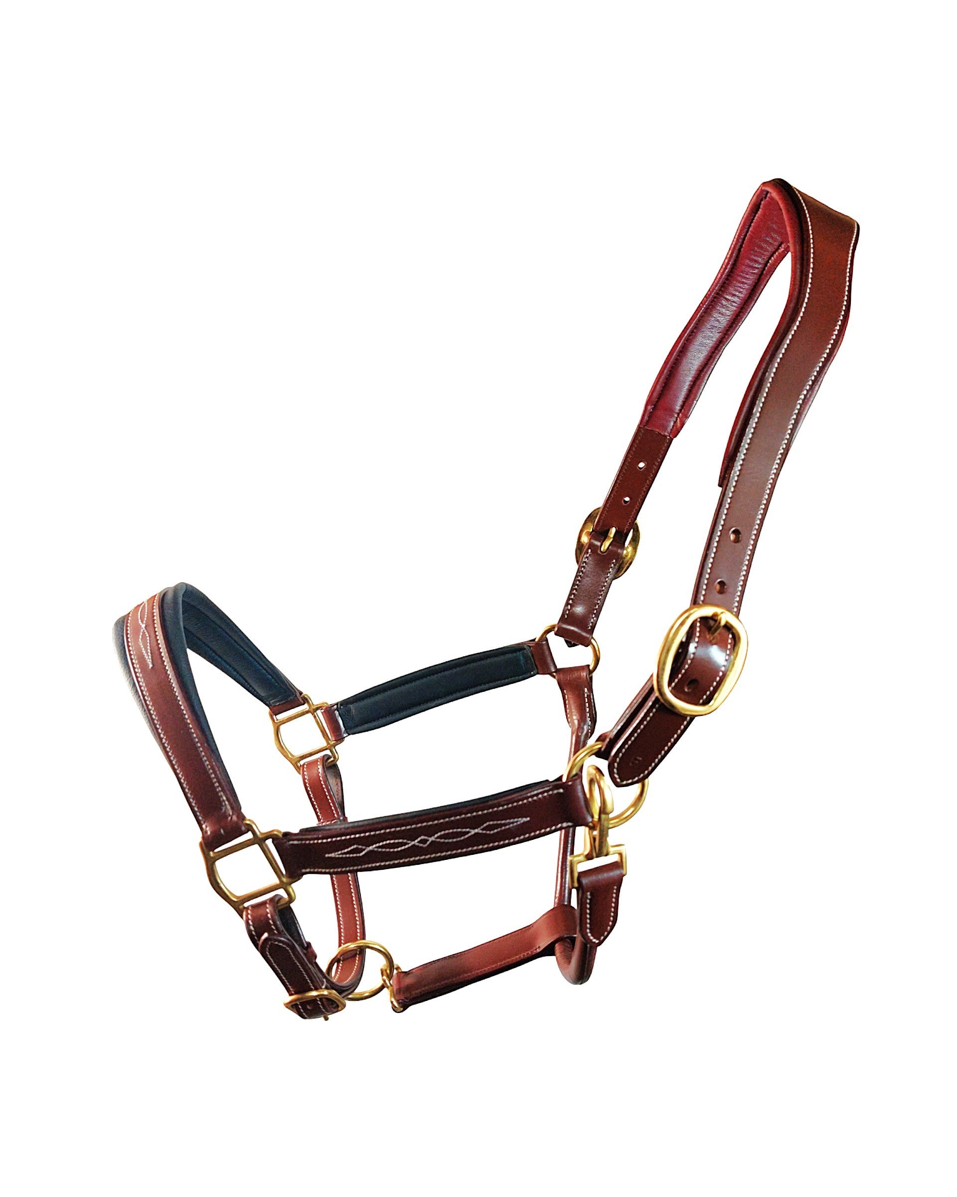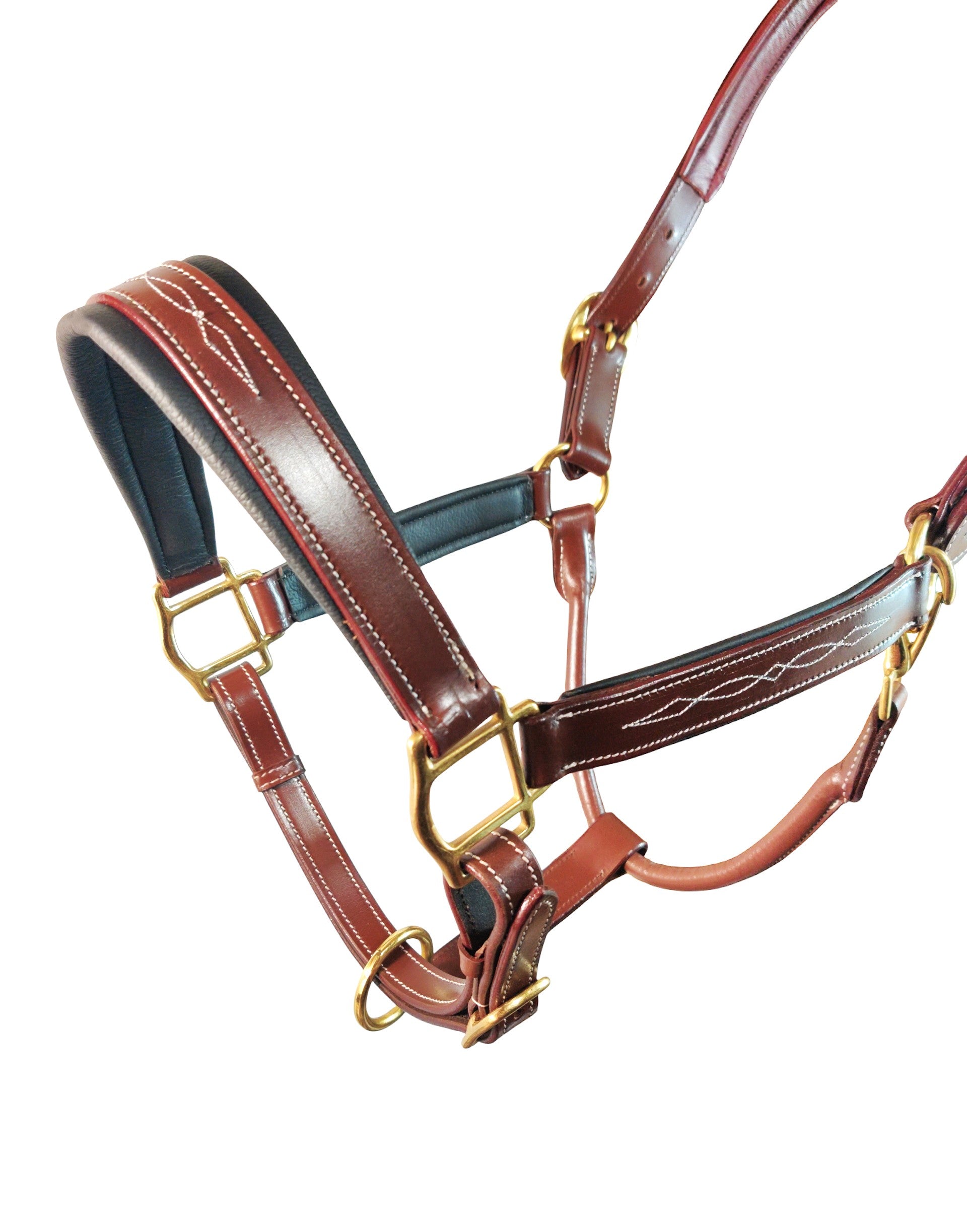 Premium Fancy Stitch Leather Halter – Ergonomic Padded Crown & Nose, Adjustable Fit, Brass Hardware