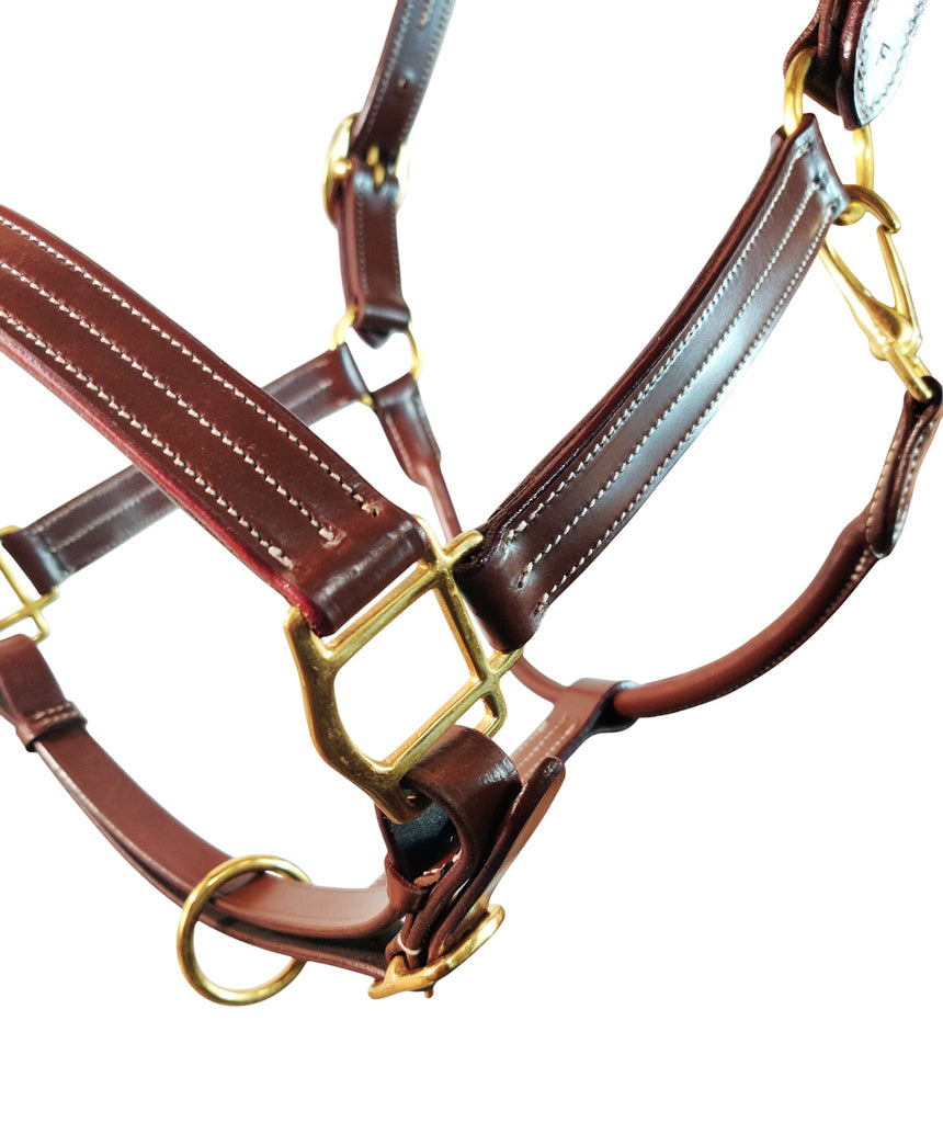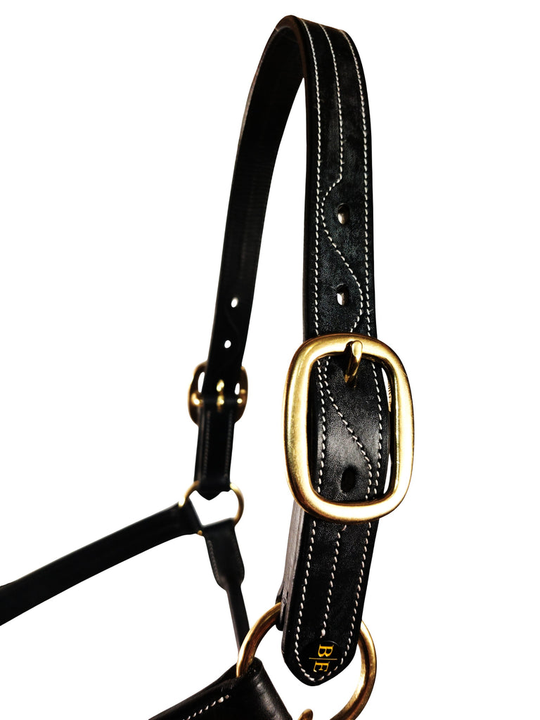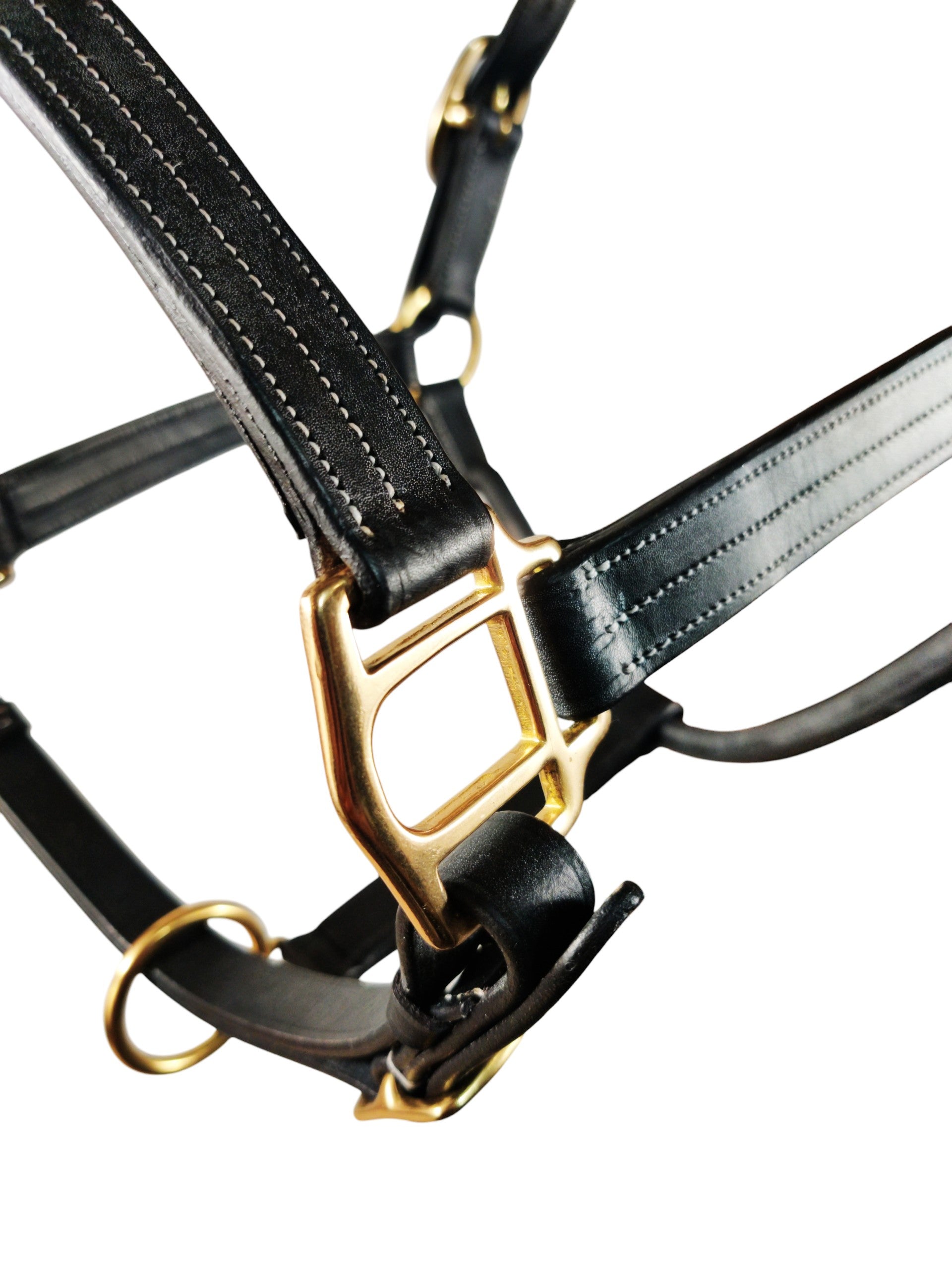 Premium Triple Stitch Leather Halter – Adjustable Fit, Brass Hardware