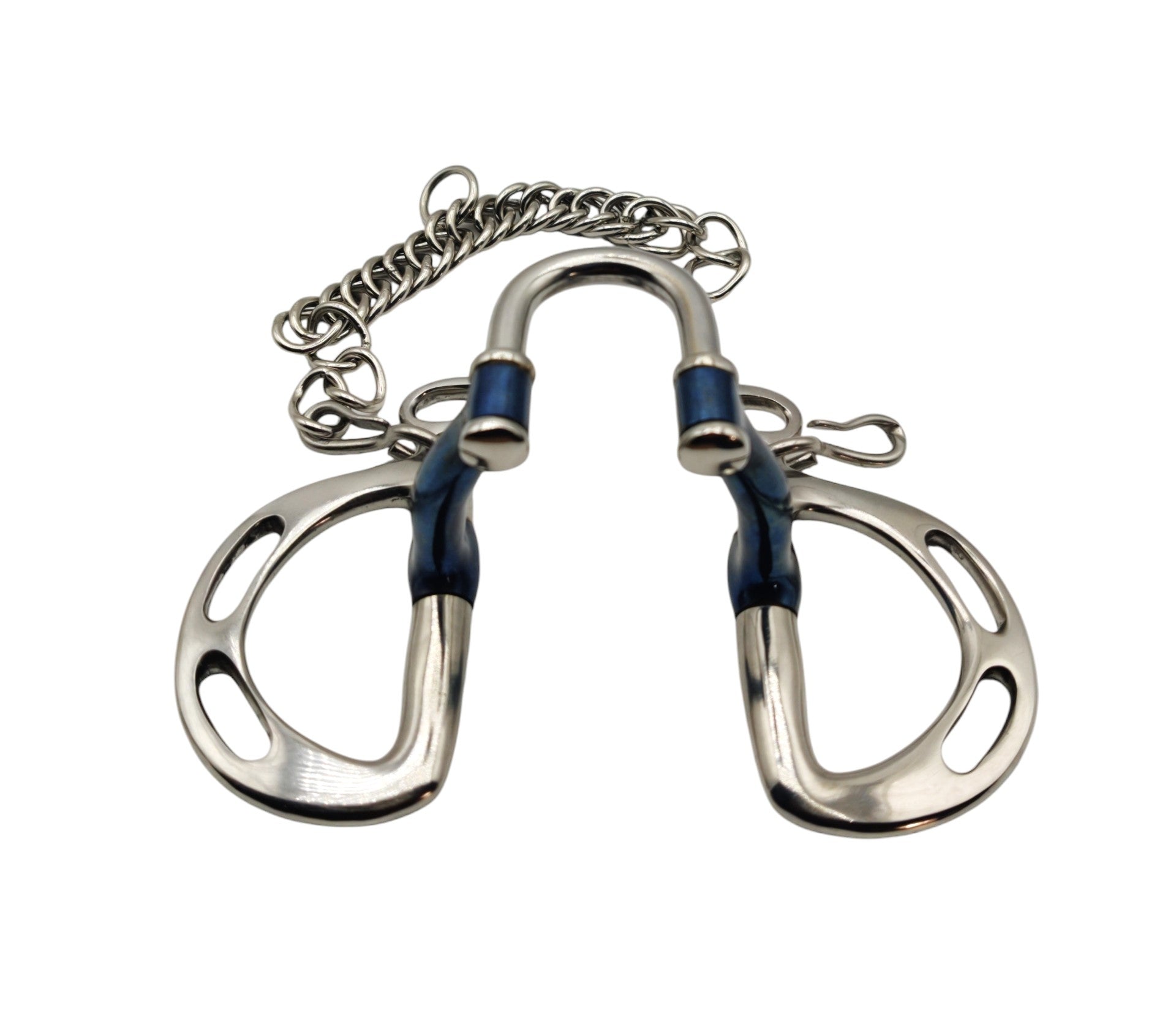 Uxeter Kimberwick Correction Bit with Sweet Iron Mouth – 5″ Medium Ported Blue Sweet Iron Mouth
